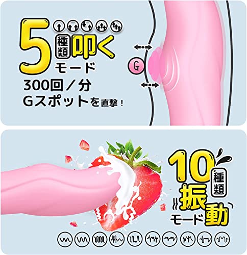 【新時代の潮吹き体験!ナカも外も同時に開発!】ナカも外も同時に刺激できるバイブです。製品を挿入後、先端部分を振動させながらGスポットを刺激、外でクリトリスの敏感なポイントを吸う快感を味わえます。クリトリス&Gスポット&ポルチオを同時に刺激でき、外での快感を感じながらナカを刺激できます。【10種類の振動&5種類の吸引&5種類の叩く】10パターンの振動&5段階の吸引&5種類の叩くで合計250通りの楽しみ方があります。気分によって自由に調整し、いろいろな快感を楽しむことが可能です。【Gスポットを直撃!完璧なサイズ】まさに本物のような質感!リアル感をお求めの方や初めてご使用の方から普段からご使用されている方まで幅広い皆様にご利用いただけます。ディルドとしての標準的なクオリティは備えており、挿入部分は10.5㎝あります。ちょうどいい大きさで必ずご満足いただけます。【静音&安心素材】強力にもかかわらず音が静かなので、使う場所を選ばず、外でもプレイを楽しめます。素材は高品質のシリコン素材を使用しているため、シリコン独特の匂いもせず、またさらさらとした手触り、適度な柔軟性もあるのでアダルトグッズに抵抗にある方でもご使用いただけます。そして振動が細やかで優しいので痛みを感じることはありません。【マグネット充電&生活防水】マグネット式充電を採用しているため、防水性と耐久性があります。防水仕様ではありますが、長時間水に浸すことは避けてください。ご購入から半年間の品質保証をお付けしております。保証期間内に故障・不良が発生した場合は良品交換や返金などで対応させて頂きます。また商品に関してのお問い合わせは当店までご連絡ください。24時間以内に対応させて頂きます。