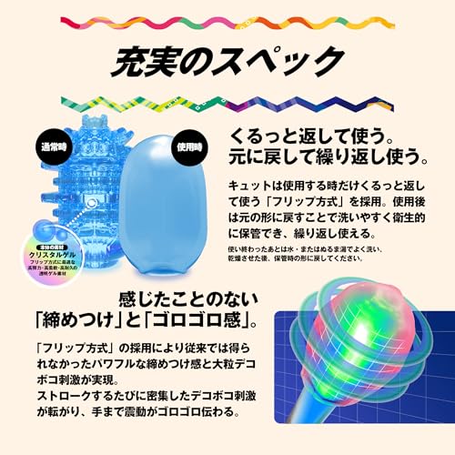 • 【感じたことのない「締め付け」と「ゴロゴロ感」。】「フリップ方式」の採用により従来では得られなかったパワフルな締め付け感と大粒デコボコ刺激が実現。ストロークするたびに密集したデコボコ刺激が転がり、手まで振動がゴロゴロ伝わる。