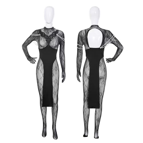 商品名 チャイナ服 セクシー 小悪魔 コスプレ チーパオ シースルー 斑点 小悪魔ランジェリー シースルー ボディストッキング ボディタイツ 全身網タイツ ボディストッキング ブラック スリット ワンピース ハロウィン 仮装 かわいい レディース
