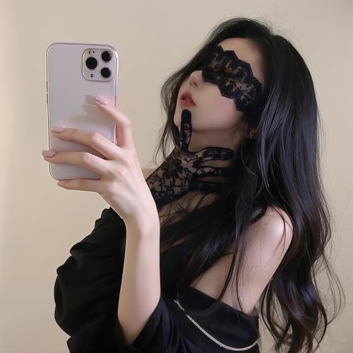 目隠しだけど、レースでしっかり見れるので、女性は安心、男性は目隠ししてるつもりになれるアイテムです はちまきのように後ろで結ぶだけなので簡単に使えました 手袋も同じ意匠でゴージャスな感じがします 可愛いデザインなので、UVカットなら普段使いできるのになぁと思ったりもしました