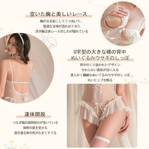 [Moerstar] バニーガール コスプレ 可愛い ウサギ レオタード セクシーランジェリー 透け シースルー 下着 バニー 仮装 コスチューム 過激 エッチ えろい 背中あき フリーサイズ ウサギ耳のカチューシャ付き 6点セットは、ランジェリーをお探しの方におすすめの商品です。