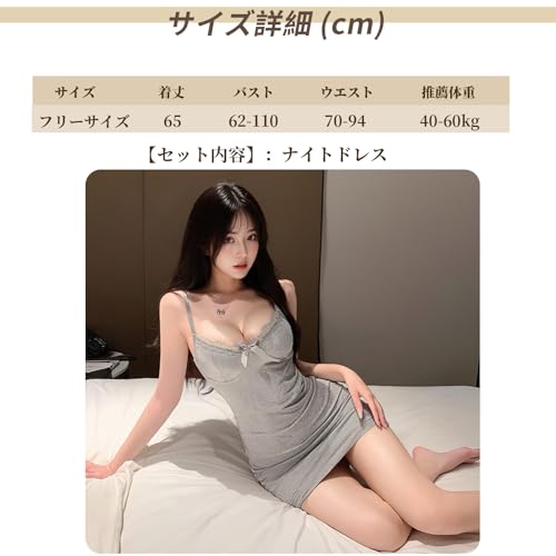 商品名 [QINGCHENGNIΛO] ナイトドレス アダルト レディース エロチック セクシーランジェリー 過激 変態 キャミソール 蝶結び レース Vネック グレー 女性 下着 エッチ カップル刺激 誘惑 パジャマ