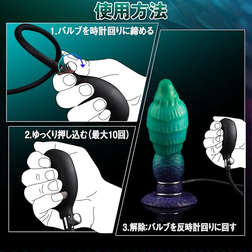 【膨らむ快感】本製品は、空気注入式でサイズ調整が可能な膨張設計を採用。片手でポンプを軽く握り、ゆっくりと押すことで、本体が徐々に膨らみ、男性器のようなリアルな圧迫感とフィット感を実感できます。※注:空気を注入する際は、ゆっくりと行い、10回程度を目安にしてください。(快適な使用のため、ローションをたっぷりとご使用ください)【商品仕様】全長約19.2cm、挿入深さ約16cm、中央部直径約5.7cm、膨張時最大約7.9cmに拡大。ディルドと人外ディルドのデザインを見事に融合させた、まさに「野性味溢れる一本」。表面には猛獣を連想させるゴツゴツとしたリアルな凹凸が施されており、体内での圧倒的な膨張感と刺激が、まるで本能を貫かれるかのような快感を引き出します。凄まじい圧迫感とともに、体内での揺さぶりがあなたを支配します。【吸盤付】本製品は強力な吸盤が付いたベースを採用しており、床や壁、浴室などの平らな場所にしっかりと固定できます。使用中にズレることが少なく、あんしんしてお楽しみいただけます。男女兼用の設計で、両手を自由に使って拡張プレイを思いのままに。奥深くまで届く刺激で、快感に没頭できるこだわりのデザインです。【柔らかいシリコン】高品質で柔らかなシリコン素材を使用し、柔らかな肌触りで体内にも優しい設計。適度な弾性と圧倒的な耐久性を兼ね備えているため、膨張後でも破れにくく、100%防水であんしんしてお使いいただけます。【厳重梱包と品質保〇】弊店はお客様に優先のサービスをご提供しております。ディルドをバレずに買える、安心の梱包サービスを提供します!ご購入日から、1年間のアフターサービスが付き、商品に何かご不備また不明がある場合、お手軽にお問い合わせください。