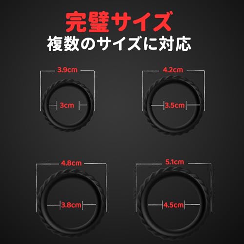 - 【4点セット】:4種類の内径(30 mm、35 mm、38 mm、45 mm)のリングです実際のペニスサイズとお好みによって自由に調整できますパートナーと楽しむご使用されるのにふさわしいサイズを選択してください