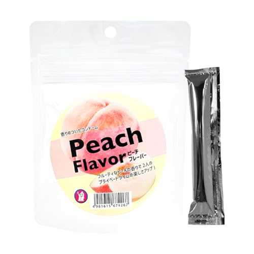 商品名 コンドーム フレーバーコンドーム Mサイズ 6個入パウチ 全5種類の香り 無印スティックローション付き 避妊具 スキン (Mサイズ, ピーチ)