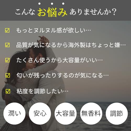 • このローションは日本製 化粧品認可取得工場製造品です!海外で大量生産されたローションとは違い、衛生管理を徹底した日本の化粧品工場で製作しております。直接デリケートな部分にも触れる物だからこそ、国産の高品質ローションをご利用下さい。またローション専用のラインで製造しておりますので、粘度のムラ、ローションが薄いなどのトラブルも心配ございません