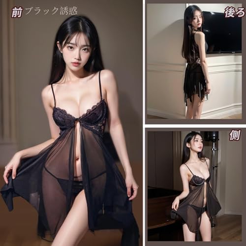 [Dubxon] セクシーランジェリー 過激 変態 セクシーランジェリー ベビードール えろい下着 女性 セクシー コスプレ 過激 レディース ナイトウエア シースルー 誘惑下着 シースルー ふわりとした可愛らしいひらひらの前開き V字胸元とバスト周りの透けレース 紐Tショーツ付きは、ランジェリーをお探しの方におすすめの商品です。