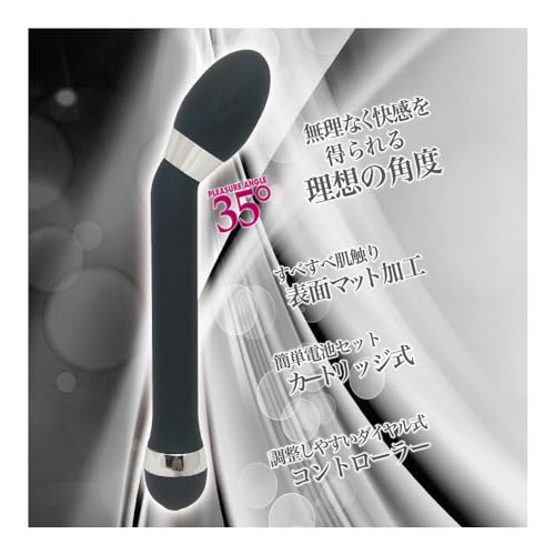 この角度が凄い!セルフプレジャーにピッタリ!おじぎをするように頭部が曲がったタイプのスティックトイが新登場!全長19センチのセルフプレジャー向けのスティックローター。傾斜度35度、狙った箇所に当てやすいように頭部の角度を曲げました。この傾斜度が、無理な体勢を強いらずに、自然に楽で気持ち良い姿勢へ促すことでしょう!さらに、振動を強弱調整しやすいダイヤル式コントローラー。電池をセットしやすい、カートリッジ式。使いやすいサイズとなる、全長19センチに、頭部直径3cm。握りやすい、スティック部直径2センチ。軽くて持ちやすい、重さ62グラム。すべすべと肌ざわり良い、マット表面加工。貴方自身をもっと輝かせる、セルフなプレジャーを応援するスティックローター!