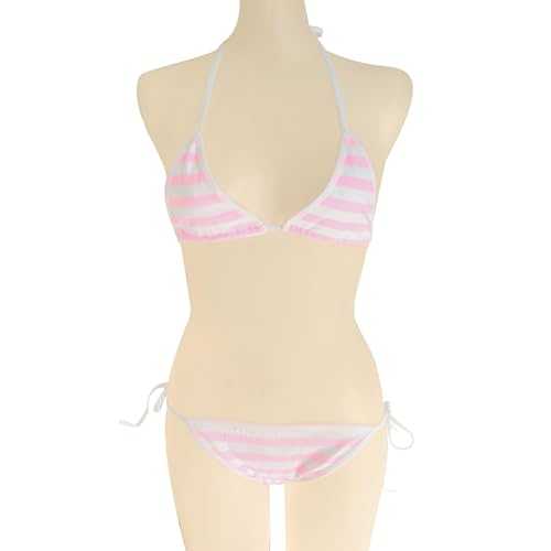紐タイプの縞パンと縞ブラのレディース上下のビキニセット。しまぱん.comの縞紐パン&ブラセットのコットンタイプの中でも太めのピッチのボーダー。ビーチやプールサイドのシーンを連想したコスプレとして輝くアイテム!ロリっぽさを表現したり、アニメのキャラクターになりきってみたり、非日常をお楽しみください。サイズはレディースを想定したフリーサイズですが、紐には伸縮性があり、調整が可能です。カラーは水色&ホワイトとピンク&ホワイトをご用意しました。胸パッドはございません。気になる方は別途胸パッドをご用意してご着用ください。